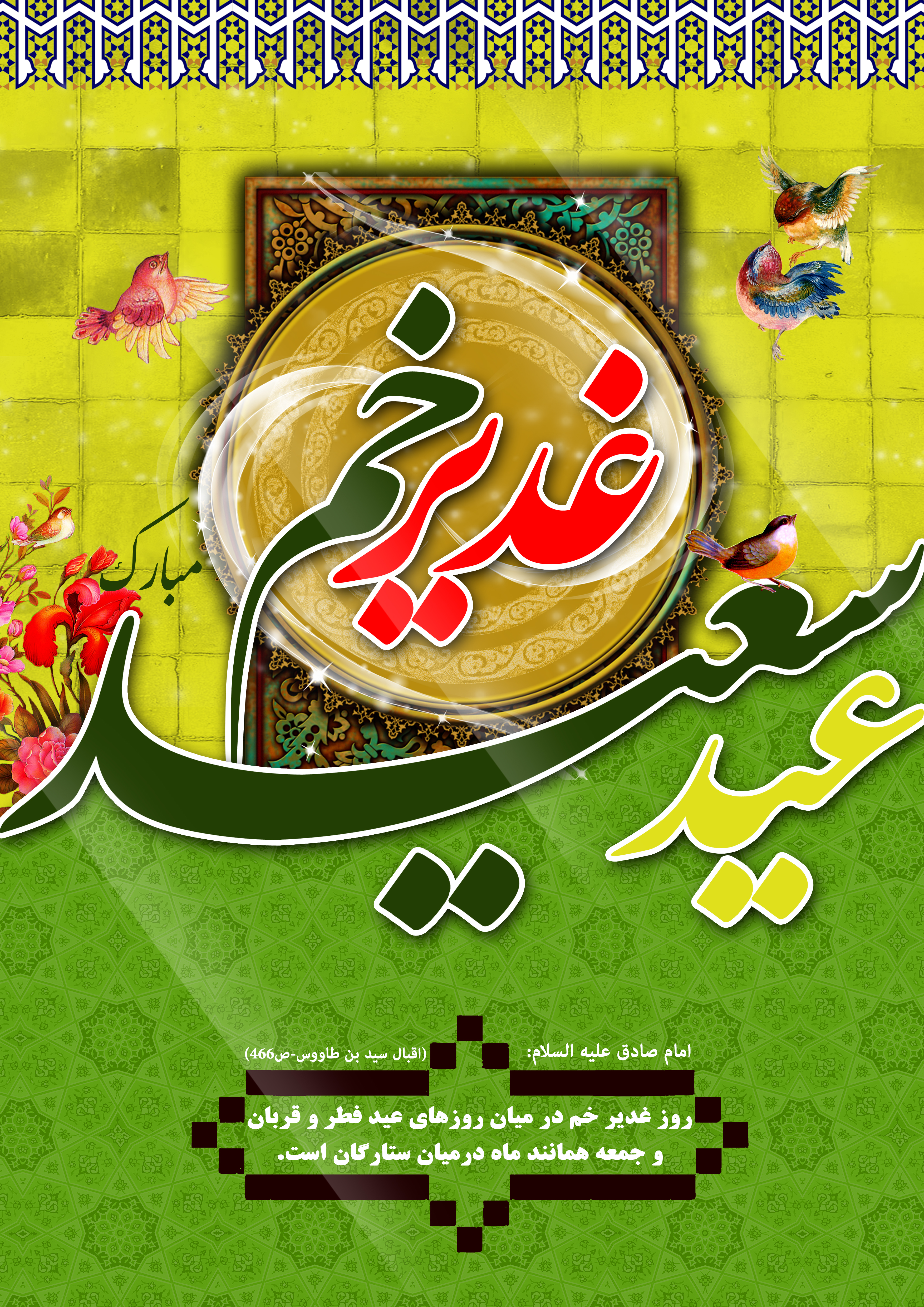… الْیَوْمَ أَکْمَلْتُ لَکُمْ دِینَکُمْ وَ أَتْمَمْتُ عَلَیْکُمْ نِعْمَتِی وَ رَضِیتُ لَکُمُ الإِسْلاَمَ دِینًا …امروز (روز غدیر خم) دین شما را به حد کمال رساندم و نعمتم را بر شما تمام کردم و اسلام را بعنوان دین برای شما پسندیدم. سوره مائده آیه ۳.